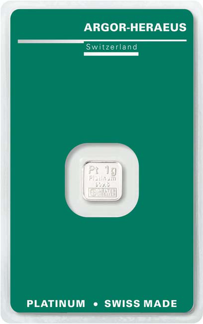 Švýcarské platinové slitky certifikované švýcarskou firmou Argor-Heraeus SA, odpovídají londýnskému standardu Good Delivery. Logo dodavatele, rafinéra a váha jsou uvedeny na svrchní straně slitku.